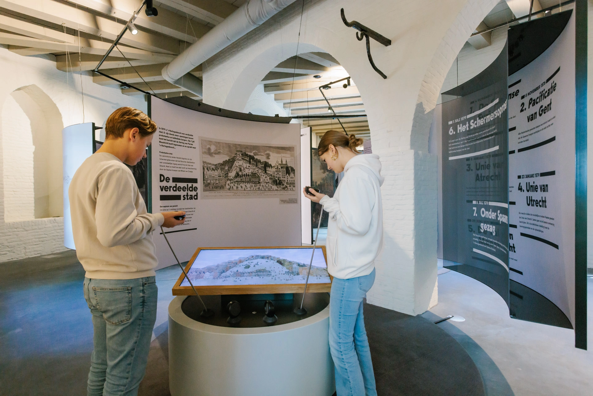 Ga mee op een reis door de tijd: van 'hier en toen' naar het 'hier en nu.' En weer terug! Tijdens je bezoek aan Museum Kruithuis ontdek je vanzelf of 's-Hertogenbosch in 1629 bevrijd of bezet werd. We brachten het beleg van deze Brabantse stad tot leven op een bijzondere manier. Want in deze expositie vind je het héle verhaal, vanuit alle perspectieven. We brengen het verhaal dicht bij de bezoeker: met ooggetuigenverslagen en persoonlijke verhalen. Met verschillende audiovisuele toepassingen, artefacten en een ontwerp dat rekening houdt met het unieke gebouw nemen we de bezoeker mee op een reis door de tijd. Van het ‘hier en toen’ naar het ‘hier en nu’. En weer terug. We willen reflectie stimuleren en lessen trekken uit de geschiedenis, de stad, de mensen en het water.