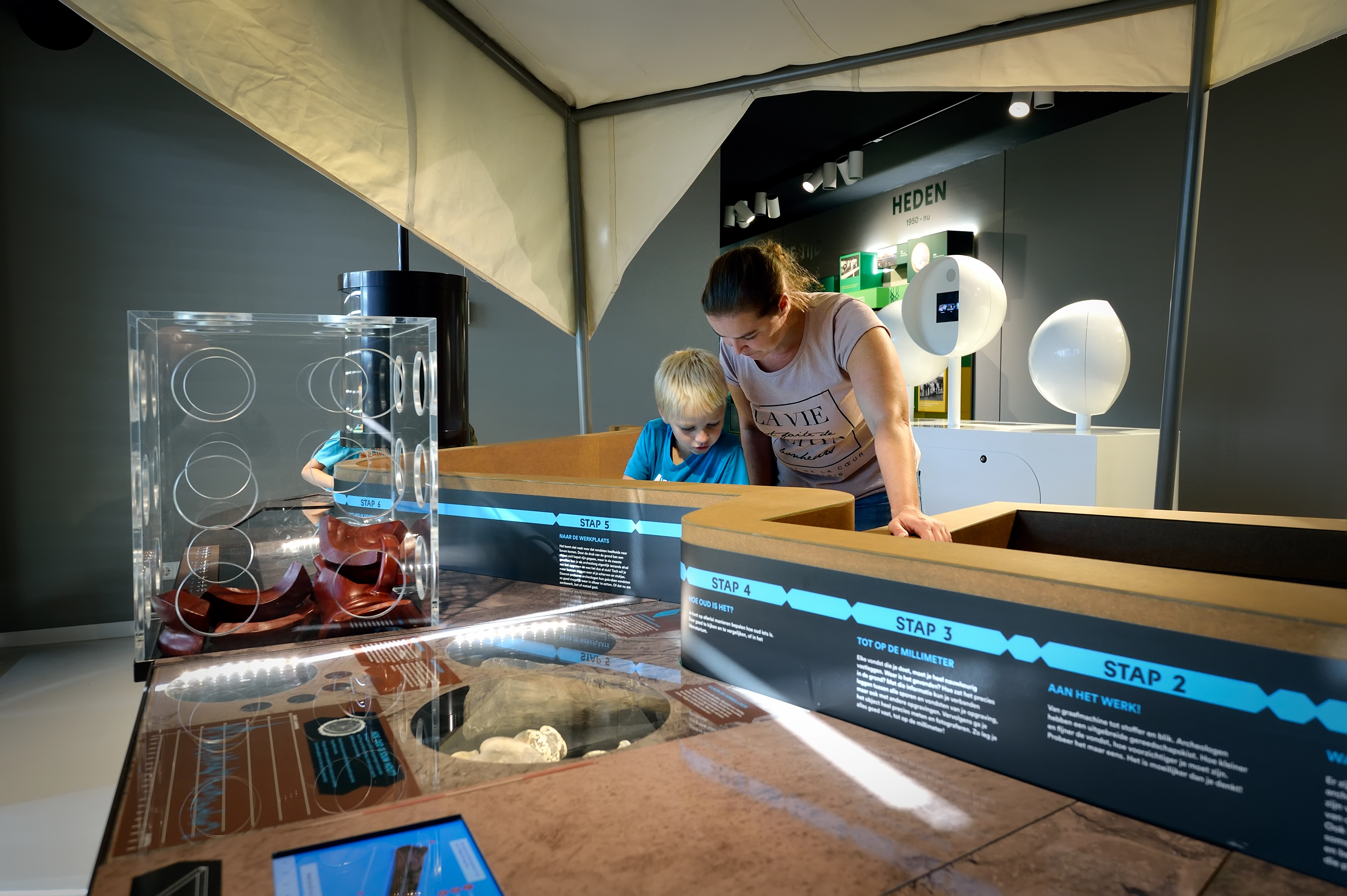 Tijdens dit project hadden wij de inhoudelijke regie en werkten we nauw samen met de gemeentelijk archeoloog. De aanpak is gebaseerd op storytelling: niet de objecten zelf staan centraal, maar de verhalen erachter. Het project is opgezet als een boek met hoofdstukken en alinea’s, waarin bezoekers stap voor stap kennismaken met de rijke geschiedenis van Leidsche Rijn. Eerst formuleerden we de kernboodschappen – wat bezoekers móeten weten over deze plek – en vervolgens vertaalden we die door naar ruimtes en exhibits.