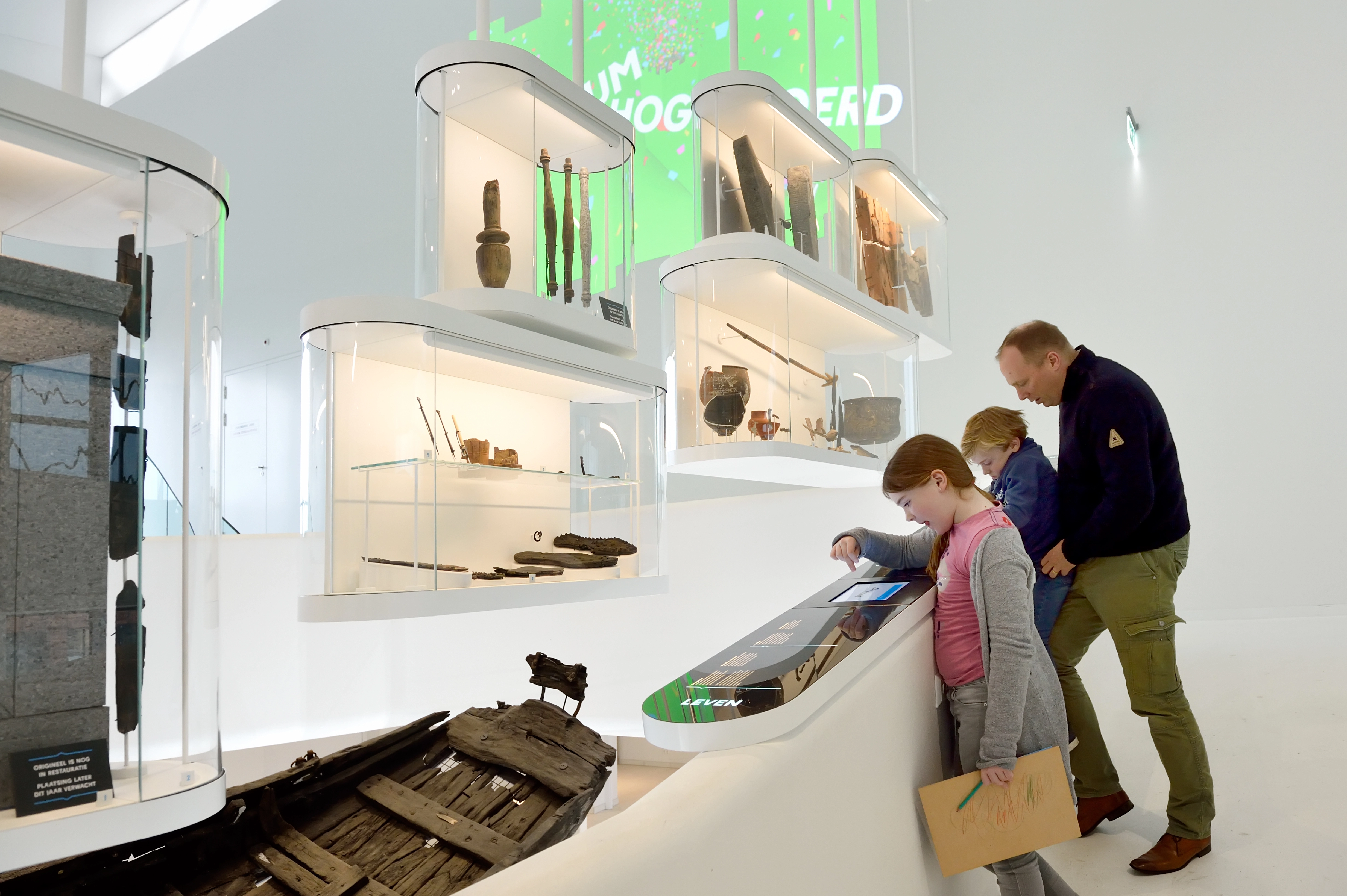 In museum Hoge Woerd vertellen we 3000 jaar geschiedenis aan de hand van zes tijdvakken, van prehistorie tot heden, waarbij bezoekers zien hoe het landschap en het gebruik van de grond veranderden. Daarnaast ontwikkelden we een exhibit over de relatie tussen mens en dier door de tijd heen. De presentatie combineert tekst, beeld, film, animatie, games en interactieve schermen. Podium begeleidde het volledige proces van projectmanagement, aanbestedingen en realisatie, dat ongeveer vijf jaar duurde.