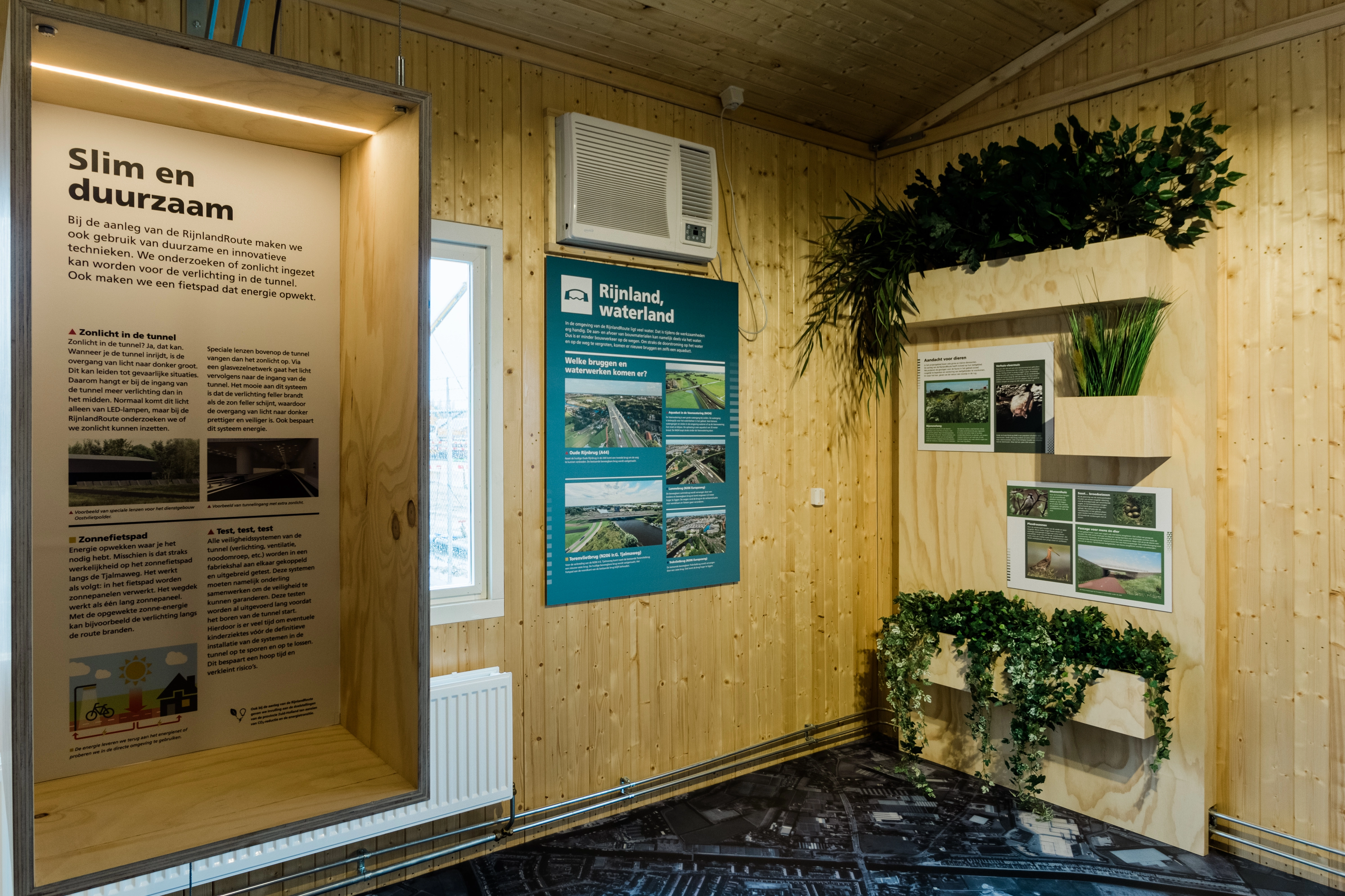 Een bezoekerscentrum, gerealiseerd in samenwerking met de aannemers en omliggende gemeenten, voor bewoners, bedrijven, reizigers en pers. Daarnaast moest er ook plek zijn voor de andere twee deelprojecten van de RijnlandRoute.